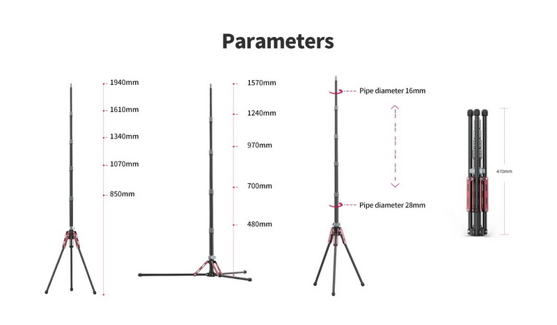 ปรับความสูงได้ตั้งแต่ 47 – 194 ซม. ครอบคลุมการใช้งานทั้งในสตูดิโอและนอกสถานที่