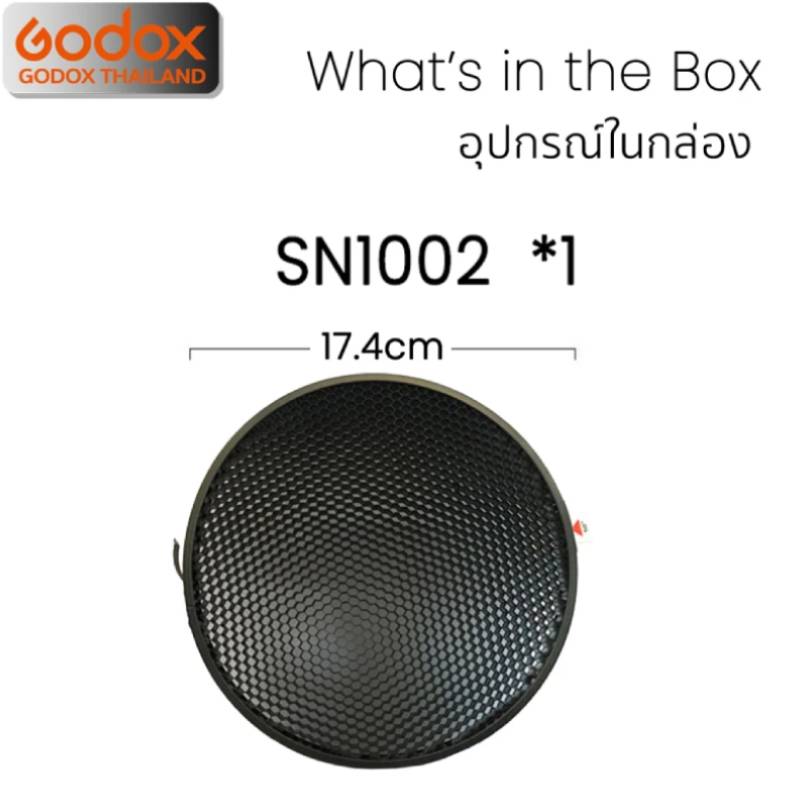 จุดเด่น/เสปคย่อ Godox SN1002 - 50 Degree Honey Comb Grid For Standard Reflector