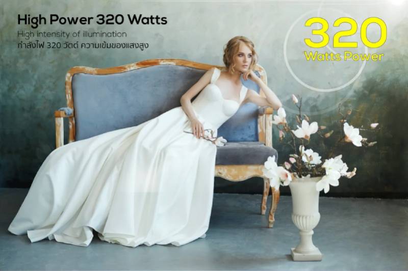 ไฟสตูดิโอกำลังสูง 320W สว่างสุด 99,000 Lux @1m เหมาะงานวิดีโอ ไลฟ์สด รีวิว และงานโฆษณาระดับมืออาชีพ