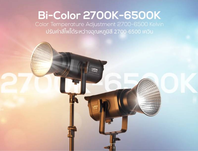 ไฟ LEON AVA300 Bi-Color สามารถปรับอุณหภูมิสีได้ตั้งแต่ 2700K ถึง 6500K ครอบคลุมทั้งแสงวอร์มสำหรับบรรยากาศอบอุ่น ไปจนถึงแสงขาวแบบ Daylight สำหรับงานรีวิวสินค้า สัมภาษณ์ หรือถ่ายคอนเทนต์เชิงพาณิชย์