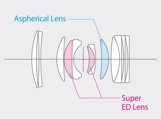 - องค์ประกอบชิ้นเลนส์พิเศษ Super ED 2ชิ้นเลนส์