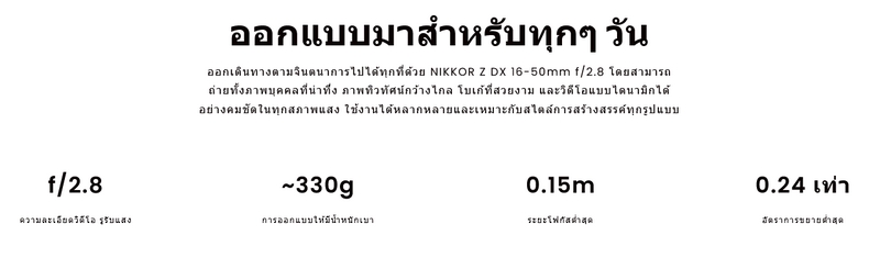 จุดเด่น/เสปคย่อ Nikon NIKKOR Z DX 16-50mm f/2.8 VR Lens