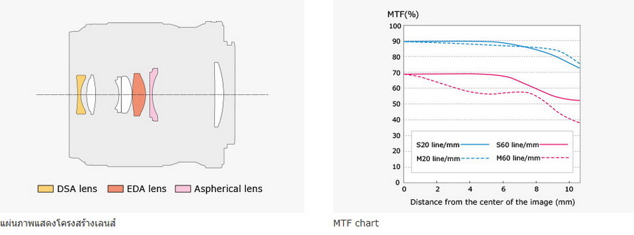 ด้วยการออกแบบโครสร้างเลนส์เพื่อให้มีประสิทธิภาพสูง ร่วมทั้งเลนส์ DSA และ EDA ซึ่งให้ภาพถ่ายที่มีรายละเอียดที่เป็นเลิศ