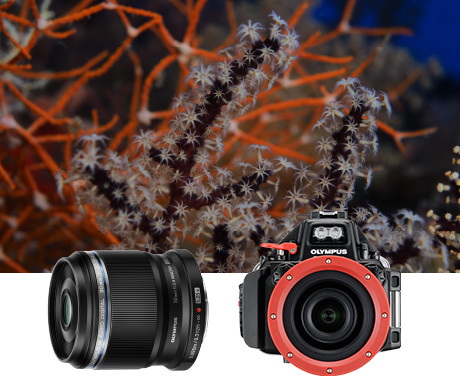 เลนส์รองรับการใช้งานร่วมกับ ระบบอุปกรณ์ถ่ายภาพไต้น้ำ ซึ่งแยกจำหน่าย สำหรับการถ่ายภาพมาโครใต้น้ำ