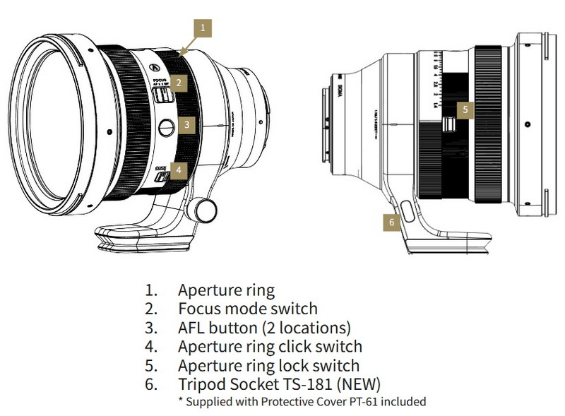 | ขาตั้งเลนส์ | TS-181 Tripod Socket + PT-61 Protective Cover |