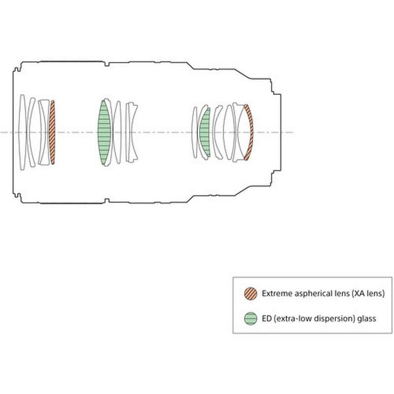 ด้วยโครงสร้างเลนส์ 17 ชิ้น 13 กลุ่ม รวมถึงชิ้นเลนส์ XA (Extreme Aspherical) 2 ชิ้น และ ED (Extra-low Dispersion) 2 ชิ้น เพื่อลดความคลาดสีและความเพี้ยน พร้อมเคลือบ Nano AR Coating II ลดแฟลร์และโกสต์ ให้ภาพคมชัดแม้ในสภาพย้อนแสง