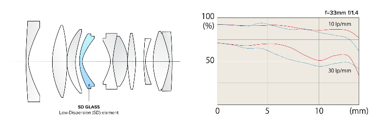 สูตรการออกแบบออปติคอลพิเศษร่วมกับชิ้นกระจก Low-Dispersion (SD) สองชิ้นให้ประสิทธิภาพการมองเห็นที่ยอดเยี่ยมและแก้ไขความคลาด