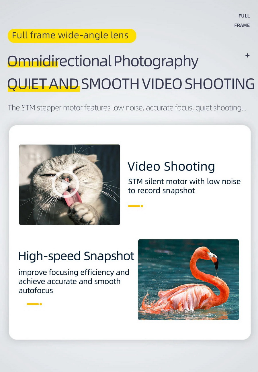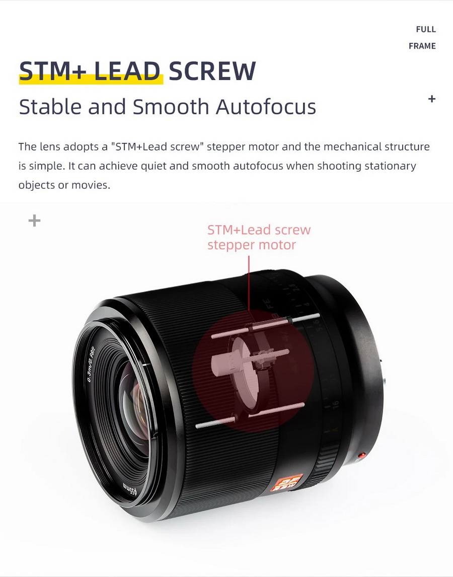 - มอเตอร์ STM ที่เงียบทำให้การโฟกัสเป็นไปอย่างราบรื่นและไม่รบกวนขณะถ่ายทำวิดีโอ