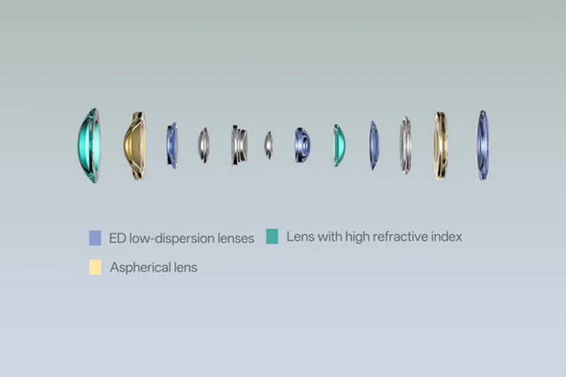 โครงสร้างเลนส์ 12 ชิ้น พร้อม ED, HR และ Aspherical ลดแฟลร์และเพิ่มความคมชัด