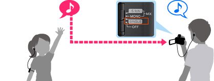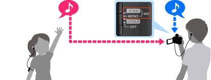 เสียงโมโนจากไมโครโฟนจะถูกบันทึกเมื่อตั้งสวิตช์โหมดเป็น SINGLE โหมด 5.1ch / MIX และ MONO / MIX บันทึกเสียงไมโครโฟนพร้อมเสียงที่ไมโครโฟนที่รับเข้ามารับไปยังช่องกลางเมื่อตั้งค่าเป็น 5.1ch / MIC และเชื่อมต่อกับกล้องที่มีโหมดบันทึกเสียง 5.1ch หรือเป็นสัญญาณโมโนเมื่อตั้งค่าเป็น MONO / MIX ที่มา : www.sony.netสเปค Sony ECM-W1M Wireless Microphone (Specification)
