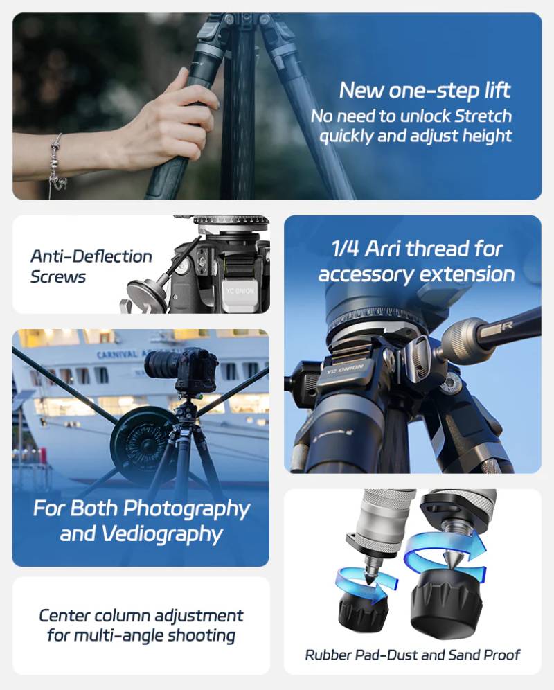 EC MALL คัดเลือกอุปกรณ์ถ่ายภาพและวิดีโอคุณภาพสำหรับมืออาชีพ YC Onion TAKO One-Flip Operation เหมาะสำหรับผู้ที่ต้องการขาตั้งกล้องคาร์บอนที่แข็งแรง น้ำหนักเบา และรองรับทั้งงานวิดีโอและภาพนิ่งในตัวเดียว
