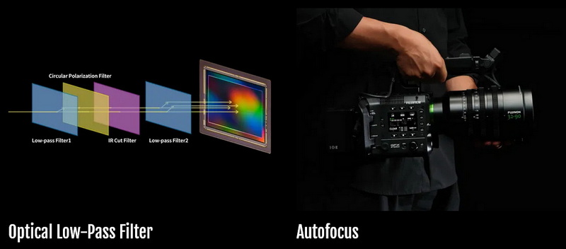ติดตั้ง Optical Low-Pass Filter ที่ออกแบบพิเศษด้วยการแยกสี่จุด เพื่อลดมอเร่และสีเทียม รักษาความคมละเอียดพร้อมความ “เนียน” แบบซินีมา ไม่ดูทิ่มตา