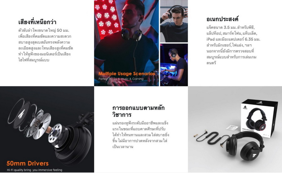 จุดเด่น/เสปคย่อ Maono AU-MH601 DJ Studio Monitor Headphones with 50mm Driver