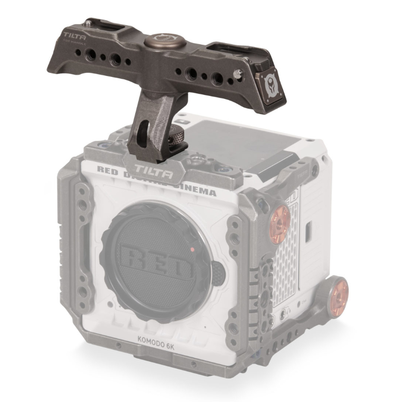ที่จับด้านบนแบบปลดเร็วนี้ยึดเข้ากับจุดยึดรองเท้าเย็นที่ด้านบนของโครงกล้องสำหรับ RED Komodo ได้อย่างง่ายดายและแน่นหนา มีจุดยึดcold shoeที่ด้านหน้าและอีกจุดหนึ่งที่ด้านหลังของที่จับ ที่จับสามารถหมุนได้ทีละ 90 องศาเพียงแค่กดปุ่มตรงกลางด้ามจับแล้วหมุนไปในตำแหน่งที่ต้องการสเปค Tilta Rotatable Top Handle