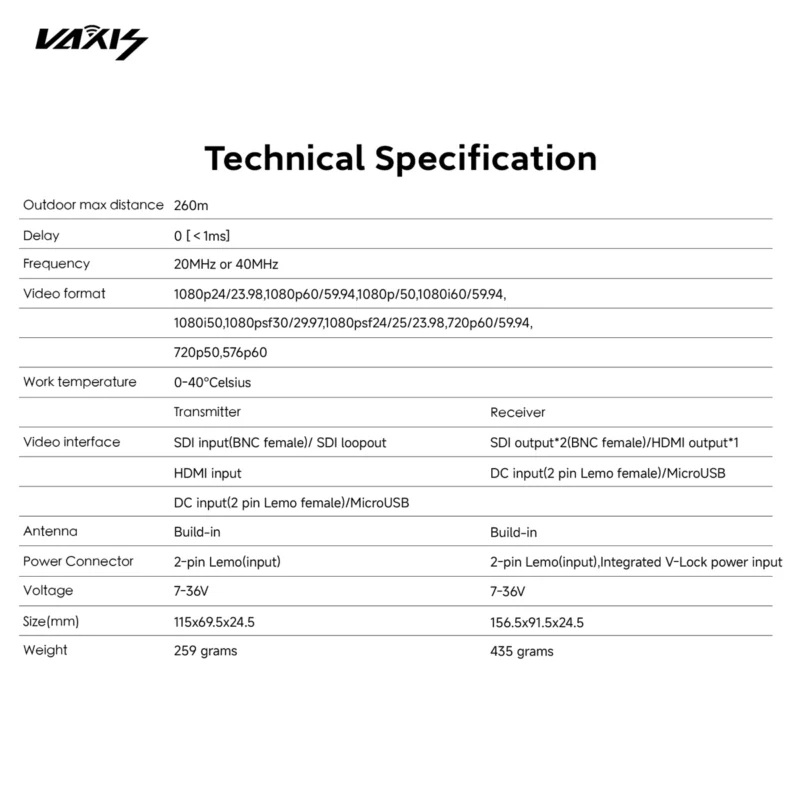 สเปค VAXIS STORM 800 Kit Zero Delay Wireless Video Transmission (Specification)