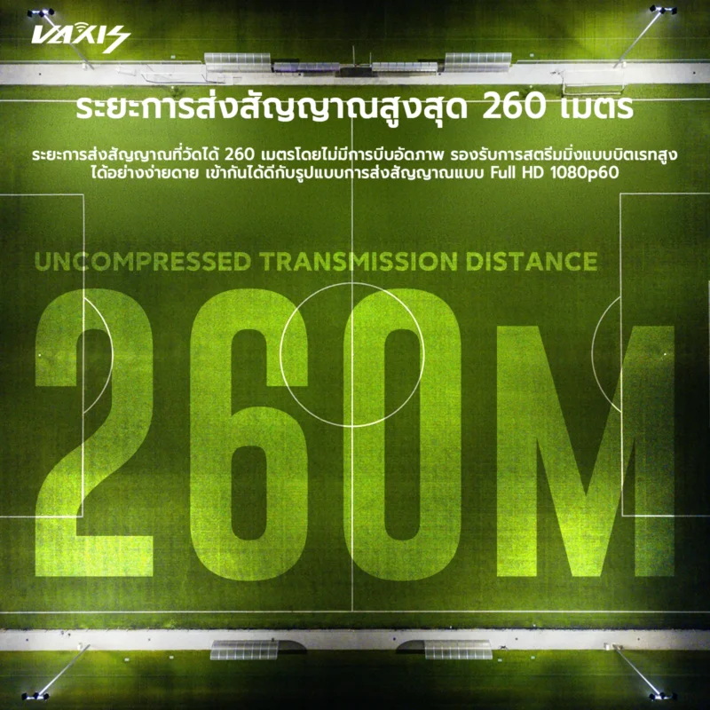 รองรับการส่งสัญญาณได้ไกลสูงสุด 260 เมตร โดยไม่มีการบีบอัดภาพ คุณภาพคมชัดเต็มเฟรม