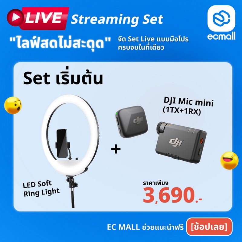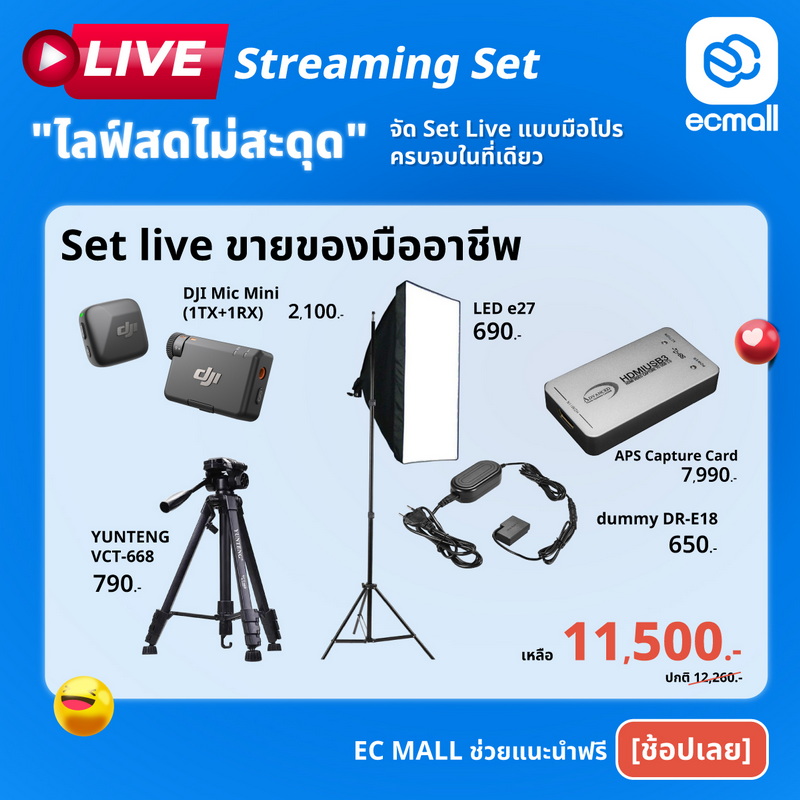 อยากไลฟ์ให้ปัง ภาพชัด เสียงใส ไม่มีหลุด จัด Set Live แบบมือโปร ครบจบในที่เดียว EC MALL จัดให้ครบทุกอุปกรณ์สำหรับสายไลฟ์มือโปร ไม่ว่าจะขายของ,live สาย Volg,live event ต่างๆ ,